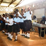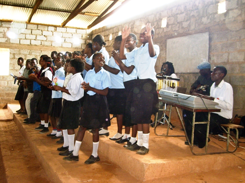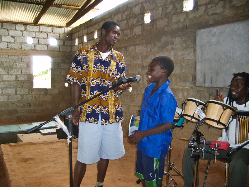 But in our moment of embarrassment in front of the children, our two musician friends suddenly arrived at the school, keeping to their promise. A few minutes later they got the children into high gear, singing and dancing along with their African tunes – these dear friends saved the day for us! The older children and teenagers recognized the musicians and felt very honored to have these famous national musicians entertain them. Thank you so much, Ras & Rex!