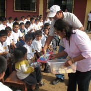Without the added help of our local volunteer team, we could have never covered so much in so little time. One volunteer was my 23- year- old nephew, Juan Francisco. My husband and I sponsored his tuition to law school, an opportunity almost unheard of there, which he has almost completed. Juan accompanied us to the schools as well as the market where we requested the vendors’ help with donating candy and traditional Christmas cake, or “Panatonis” to serve at each classroom. Marlyn, age 19, though from this simple village, is an aspiring reporter, and she proved to be a great photographer and camerawoman.
