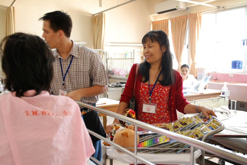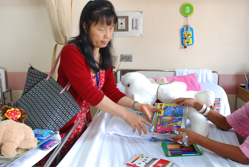 “…Our staff has been pleased with their assistance in organizing the special activities for the children in several of the wards. Their time and efforts helped to bring cheer and happiness to our in-patient children, as well as to their families. Their planning and conducting of the group art sessions with the children has been professional and well-liked by the children. Additionally, the bedside activities and gifts of donated items of toys and children’s story books, DVDs, etc, have been appreciated by the children and their families…”
