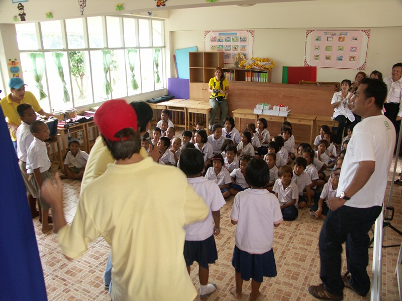 Working with teachers and students in Thai schools is always a pleasure. Being able to experience fun, laughter, and happiness with the children, and seeing the dedication of the teachers who put so much effort day in and day into helping their students have a bright future is always very inspiring. So when one of our friends invited us to organize an event for the children of a rural school in Pitsanulok province, we jumped at the opportunity. The occasion; the opening of a new school building. The activities planned; a full day of English learning, games, a magic show, puppet show, as well as the contribution of books for their new library.