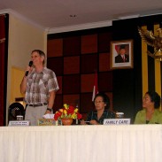 The seminar was a great success. The Governor’s wife gave some opening remarks at the beginning of our presentation and all of the attendees were very excited to receive our materials. Fivi, one of our friends from Jakarta, came along with us to help with the translating of the material. In fact, she was still working on some of the final seminar material during our first lunch break and miraculously everything was translated and ready just in the nick of time. We couldn’t have done without dear Fivi, who presented the main part of the seminar by introducing the Treasure Attic VCD’s and explaining how to use the activity pages.