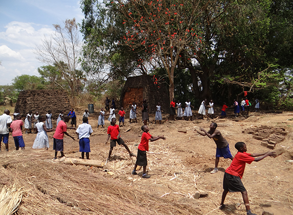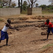 We have hit the 200 mark! We now house, educate and feed over 200 Acholi children at our Family Care Uganda School. Of course, that doesn’t mean that we have to do all the work ourselves. Our FCU students love being a part of the work and action, whether it’s fetching water from the nearby well, or spending half an hour in between classes moving bricks. These creative kids love finding fun in whatever they do. In this case, a fun game of Toss the Brick helps get all the bricks for our third brick kiln moved before the rain starts in a few days. Pictures #1 and 2 With 200 kids pitching in, consider those bricks moved! And did I mention how coordinated these kids are? Not a single brick (that I know of) got dropped!