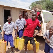 Now that we’re at the end of dry season, the well we were using has dried up. An NGO we work with has plans to help us put in a borehole well shortly, but in the meantime, drinking water has to be fetched from the local wells. Both the boys and girls jump at the chance to come to the nearest well and pump it together for their school! (Picture #4)