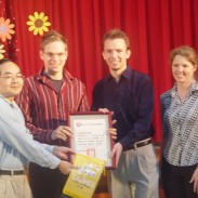 Hands of Love volunteers were able to participate in a charity event sponsored the Rotary Club in Taipei and held at the Hao Ran Seniors Citizen Center in Taipei County. The Family volunteers and their children put together some performances including a clown magic show, singing, and dancing.Through the sponsorship of the Activated Ministries, each of the attendees received a beautiful Mottos for Success calendar containing a quote or proverb for each day as well as beautiful music CD cards donated to the foundation. Joyce, our friend and manager of a popular seafood restaurant in town kindly prepared mango pudding for all the attendees and volunteers to enjoy.