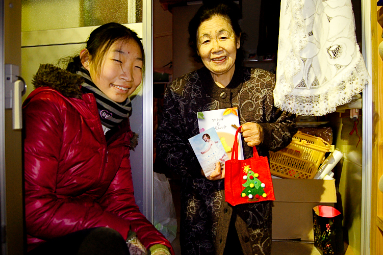 Earlier in 2012, we visited the temporary housing areas in Miyako-shi Tarou-machi, which had been constructed in the wake of the March 11, 2011 earthquake and tsunami, and we were shocked at the amount of people still living in temporary housing units in this large area. As the Christmas season approached, I knew we needed to visit that area again. Due to its location in the northern part of Tohoku, volunteers visiting that area are rare. And on my last visit, a barber we met there had told me, “Right after the earthquake, we were all desperate for food and a place to sleep but now that we’re settled, we start thinking about life. We’ve survived but now we need more.”