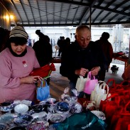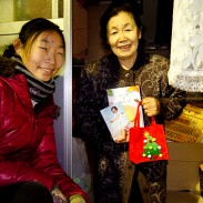 On the 24th, Christmas Eve, we went to temporary housing units up Sanriku shoreline, from Rikuzentakata to Yamada-cho, and to Miyako-shi Tarou-machi and went door to door, passing out our Christmas gift bags.