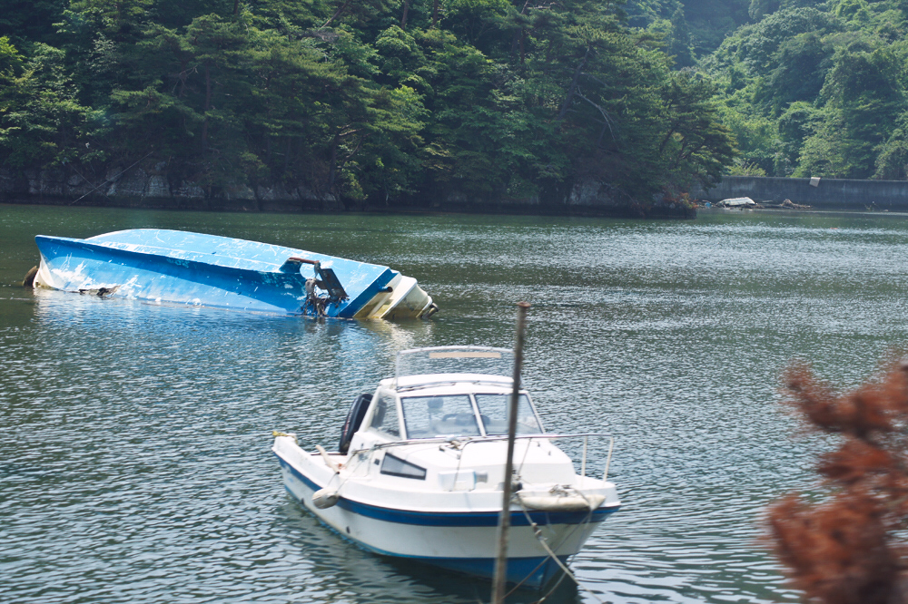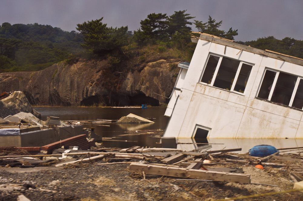 As we left the evacuation center, we met some men in their sixties smoking and taking a break from clearing the rubble. One of them was a fisherman, and he had lost every single ship he had in the harbor. He said that he had to clear away the many anchors adrift on the ocean floor, as they would hinder the new ships that would be coming and going. Then a man who looked to be in his forties came along. He was called “boss” by everyone and one of them told me, “The boss lost everything in his company. All that’s left is a hundred million yen loan.” The boss said, “I’ve been cultivating nori (seaweed), but the waves took the machine that dried nori too.” Another man said, “But boss will try again. Won’t you, boss!” and the boss laughed and answered, “I’m already 45, I can’t start something brand new now, there’s only one thing I can do – start over!” He had lost everything he built up in the disaster, on top of that he was in debt, but was determined to start anew, even from a deficit.