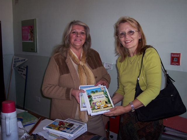 Our friend Jonas in Chile went to work stamping each book with a stamp verifying that the books were indeed a donation, not to be sold. He also attached a sticker in each book explaining in few words our volunteer work at Mendoza Vision and making it clear that our purpose was to better the quality of life for children and the community. After many hours of work and many prayers, the customs officials allowed the books through the border – something we were told could not be done.