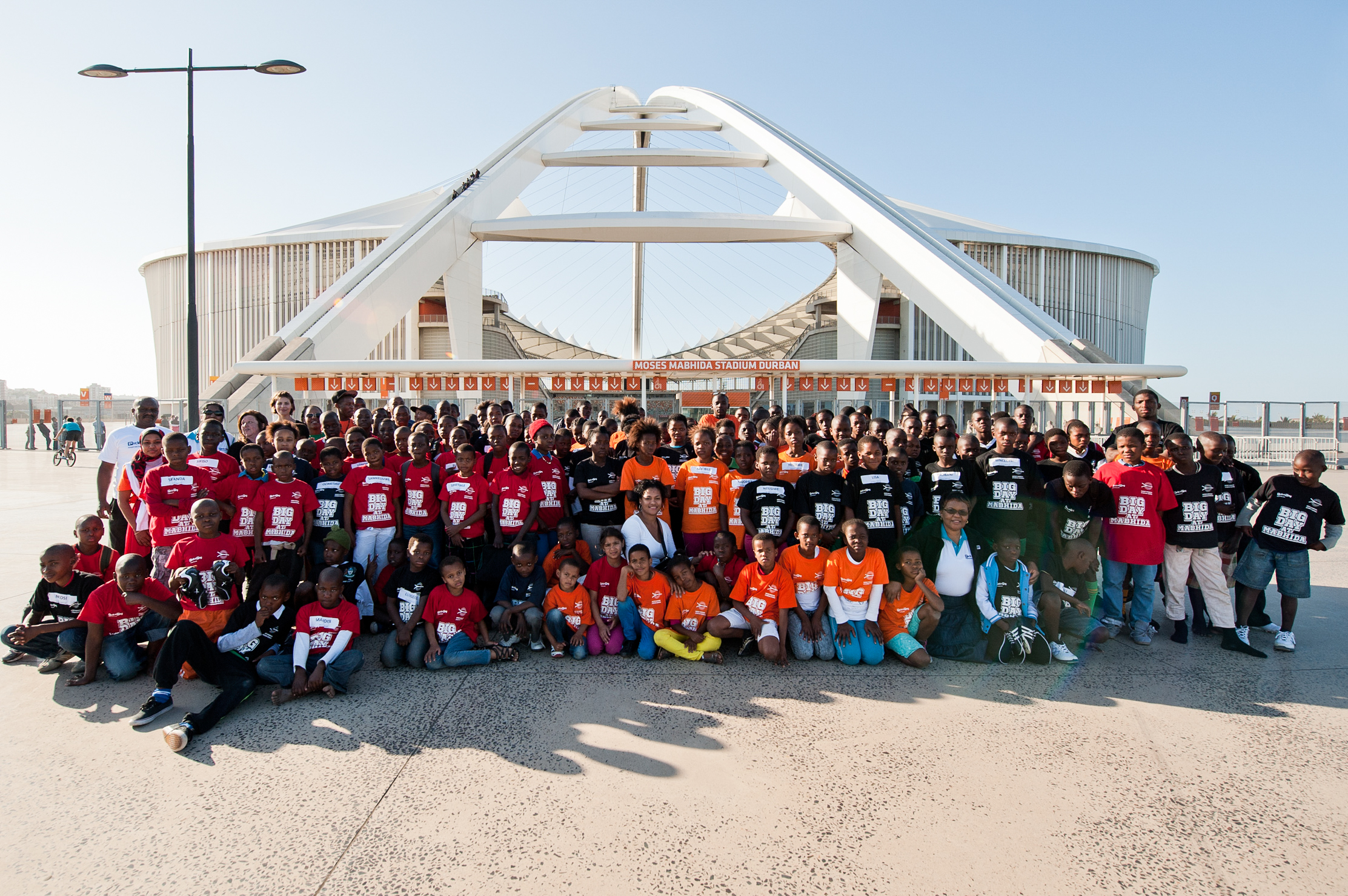 Our “Big Day at Mabhida” in July was fun for all. 130 children got to go to the awesome Moses Mabhida stadium for a fun filled day. The kids enjoyed a sky ride on the arch, a tour of the stadium as well as a special treat were they also got to see the famous Manchester city play as guests of the club.