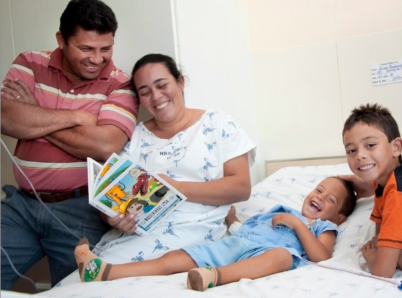 The people hospitalized in a clinical environment become very fragile, both as a result of their illnesses as well as being in an environment far from their loved ones and friends. The project “O Amor Cura!” (Love Heals!) has as its goal, through direct contact with this audience, to create something positive within a negative situation, using cheerful entertainment such as music, educational readings and videos.