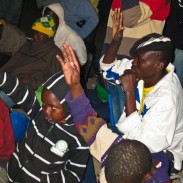 Our next stop today was to see an after game party and watch the Playing2Win team perform some skits and dances for the people in one of the townships. A local church had set up two viewing areas with large screens so that everyone could see the game today. After the game our partners from Playing2Win were able to reach many hearts and touch them with the message that God is always there for them, ready to help no matter how deep their troubles or pain. Many raised their hands and prayed the prayer to enter into a relationship with Jesus and came forward to learn more about how to live a Godly life.