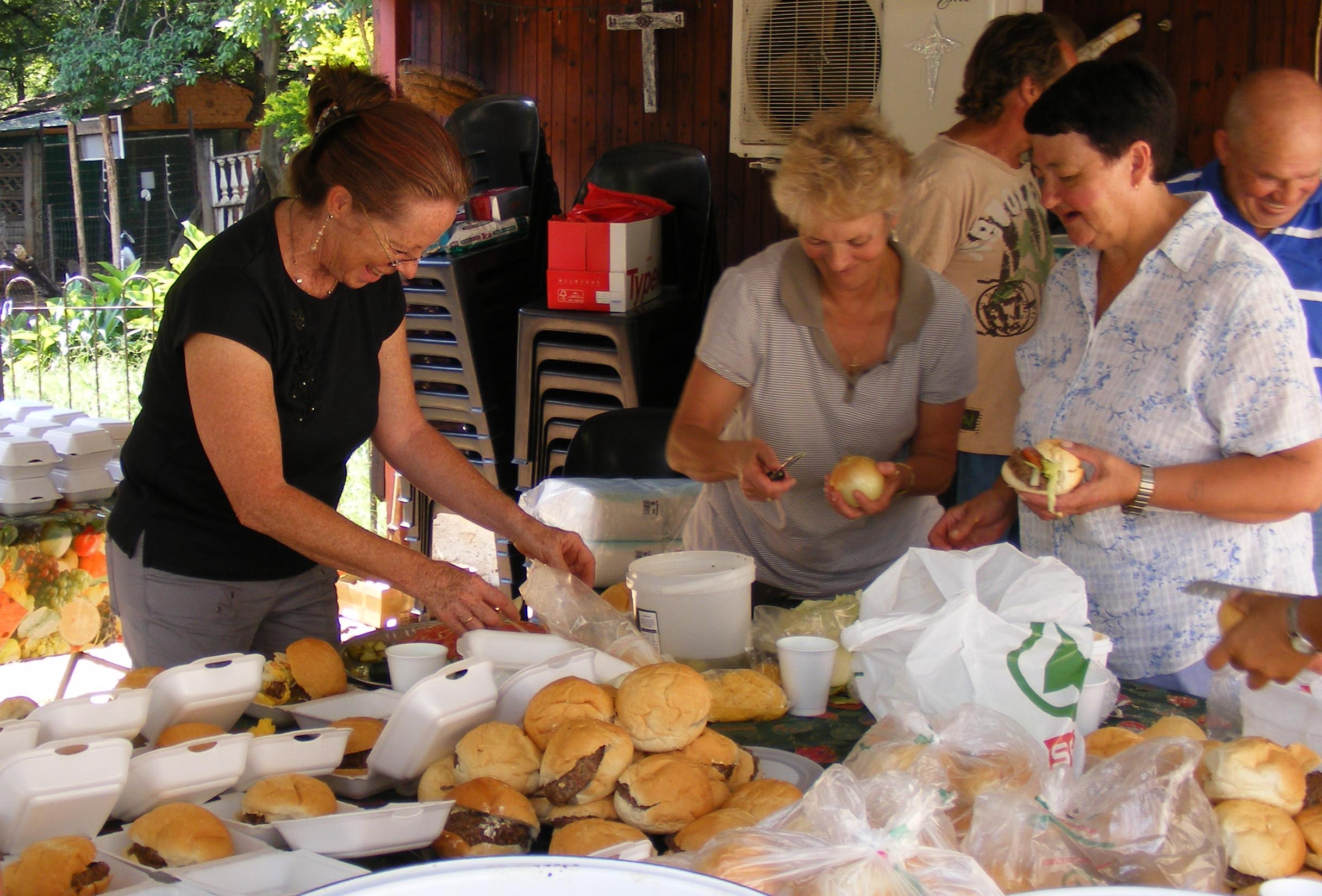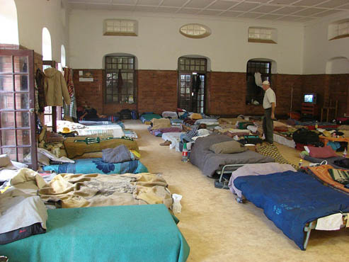 The following day, Saturday, we teamed up with Maxie and Chris Nortje and went to another shelter in the city, called Melgisedek. This is basically a hall in the back of a rundown housing unit, where destitute people are free to stay. It’s basically one huge hall, with a little space for a mattress and a few personal belongings—which is basically what the people who stay here have. There is a communal bathroom, communal kitchen, and a small dining area. There were about 30 people staying there, and most were out, so we dropped off small plastic bags filled with toiletries marked for either men or women. They were thrilled to say the least. These people have all found themselves in tough circumstances, have no work, no family, or have lost contact with relatives, and are just surviving with the kind help of others. Later on in the day, Maxie returned with hamburgers and juice that we made at our next stop, Sonheuwel.
