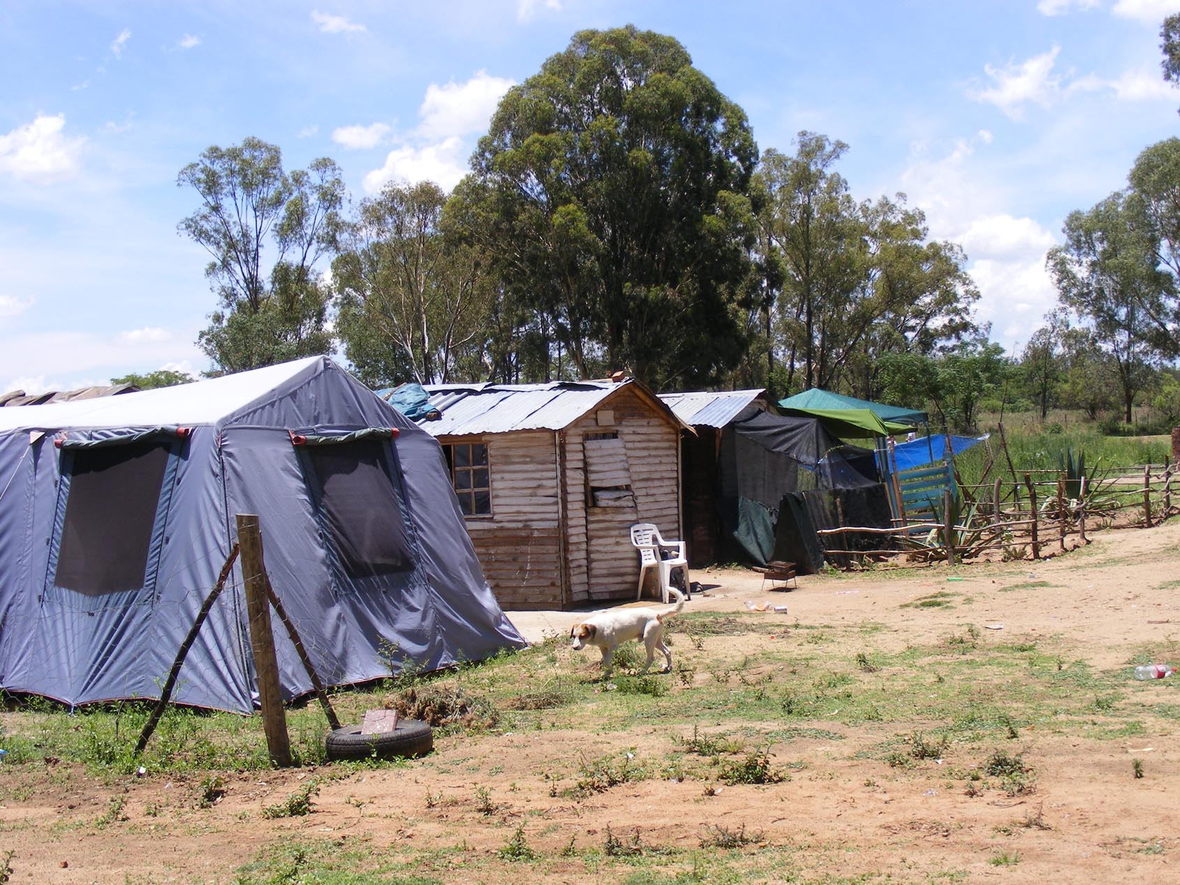 Friday, December 16th being a public holiday, my colleague Angela, and I set off to visit a place called “Sonskyn Hoekie” [translated into English as Sunshine Corner], not knowing what to expect. All we knew was that there were several families living on a farm. From what we have since learned, certain farmers make available a part of their land for destitute white people, who are allowed a small space, where they can build a shack or room. There are public bathrooms and a communal kitchen—some of these missions have a dining/community hall. The people are not allowed to cook in their rooms, but may eat in their rooms. The farmer is paid a small fee each month when people are able to afford it. We found out that that does not happen too often.