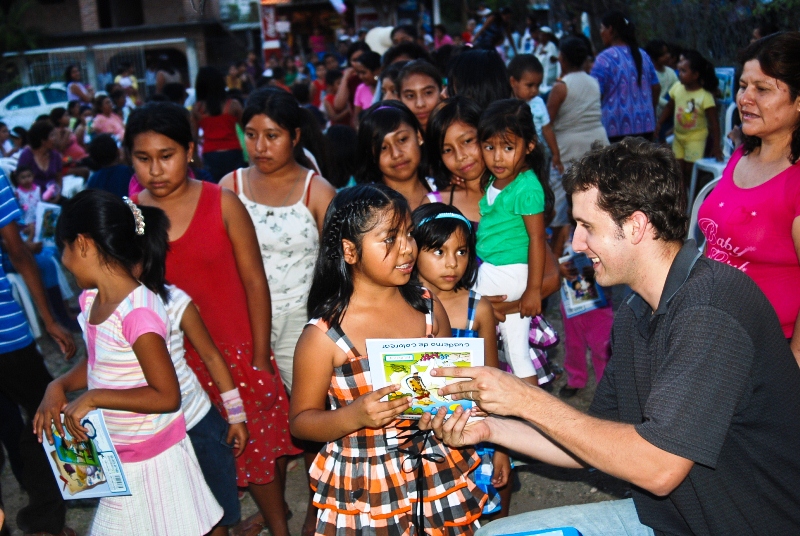 Imagine you are a boy or a girl, born in remote community of Guerrero (one of the poorest state in Mexico). The closest “big” city (of 100,000 inhabitants) is over two hours away, half of the way on mountain dirt roads. The place is dormant under an implacable heat. Nothing much happens here, especially in the way of entertainment, and one day you hear that a team of foreigners is on their way to do a program in your village, and that they are bringing with them gifts of toys and books. Wow!