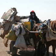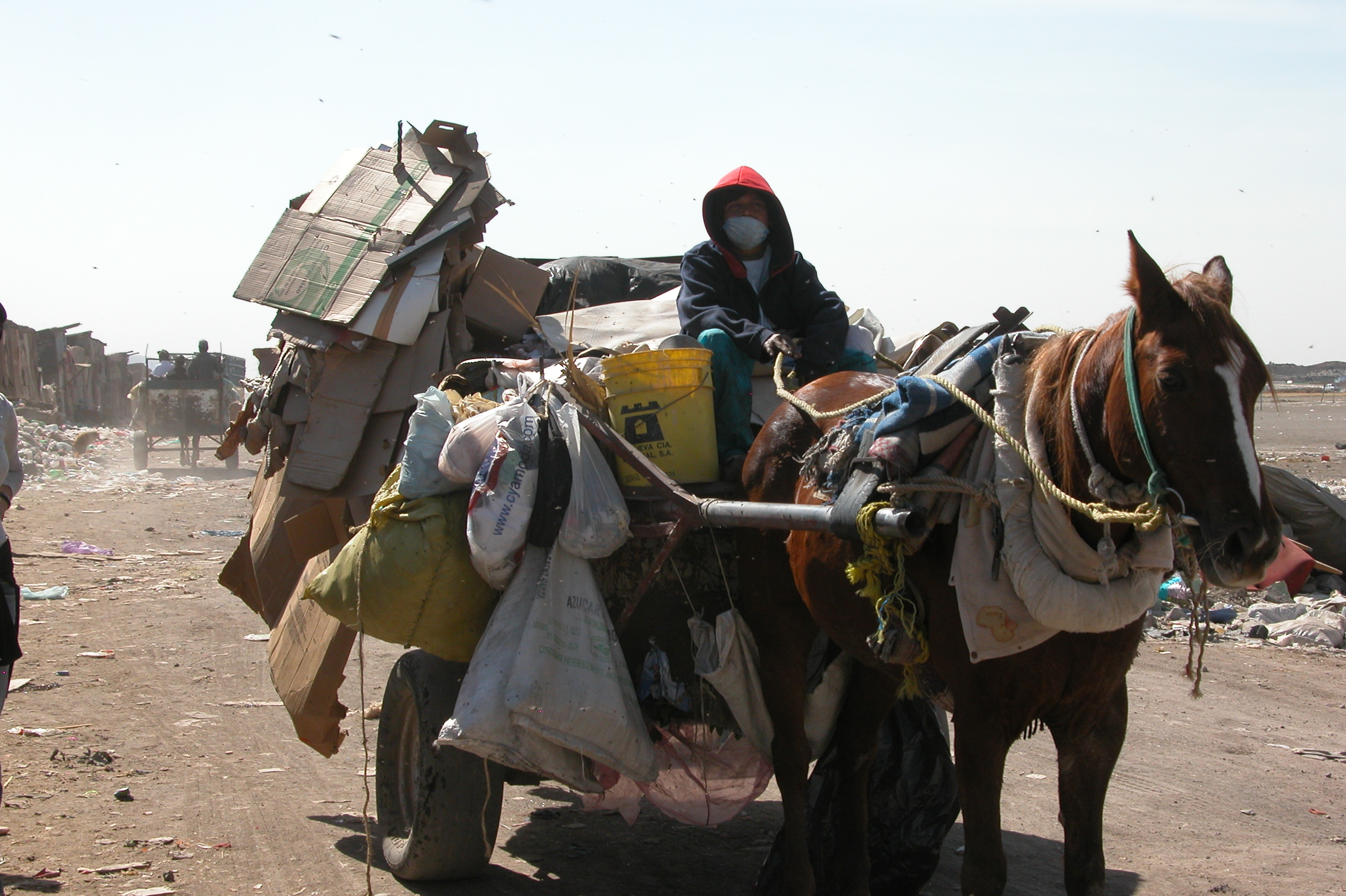 Black with grime, hair matted with dirt, they and their children ride back and forth from garbage dumps in search of something worth selling. The garbage dump is their universe where they live and form families. They have babies in make-shift hovels with no water, electricity, or sanitation. A whole marginal society with its own tough laws is established there. We asked some of them why they would choose to live in such a place, and received the same answer from everyone: because the only work to be found is selling things found in the garbage dumps. Many of the children do not go to school because they are needed to work. There is no census of the dump dwellers, they legally do not exist.