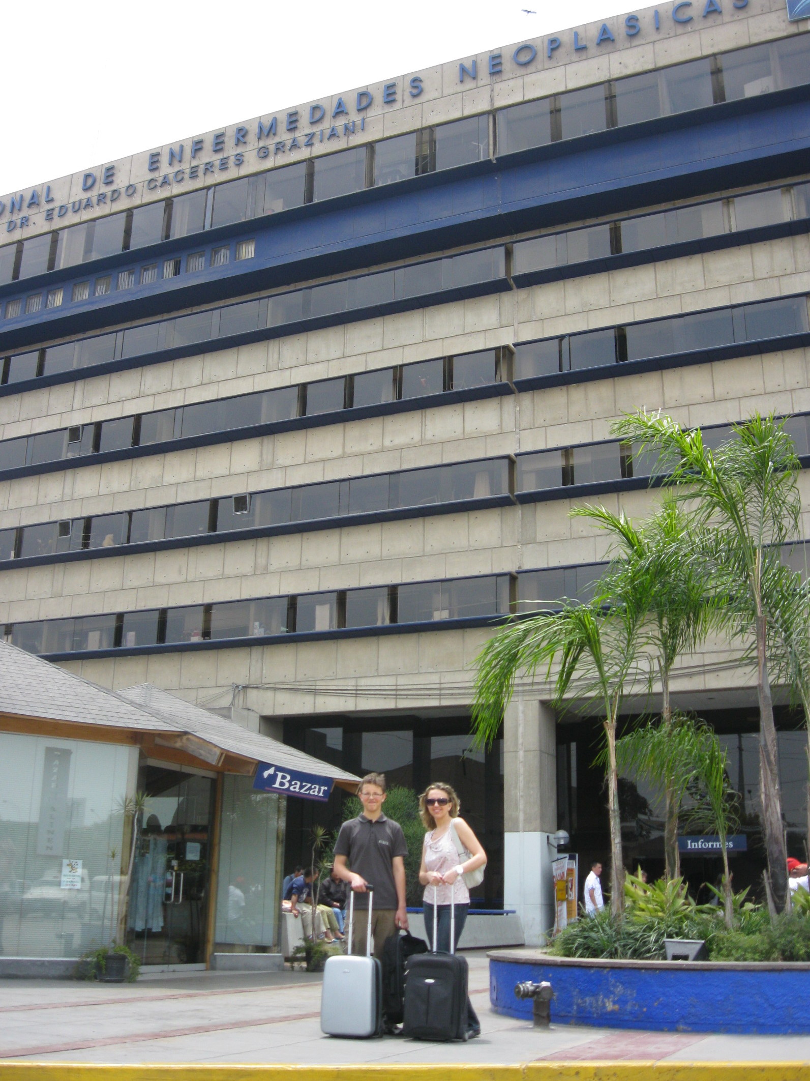 Another hospital that we had a chance to visit during this Christmas Season, was INEN, Instituto Nacional Enfermedades Neoplasicas, Lima-Peru. It is very big hospital for cancer patients. We visited the pediatric department of INEN and distributed colorful Grandpa Jake's Storybooks with CDs and give away some other gifts. Due to the children's low immune systems we were not permitted to go inside the rooms and talk personally with the children like we had done in “Hospital delNiño”. But we smiled and blew kisses to each of them; gesturing & the gifts we were leaving them & their faces lit up.