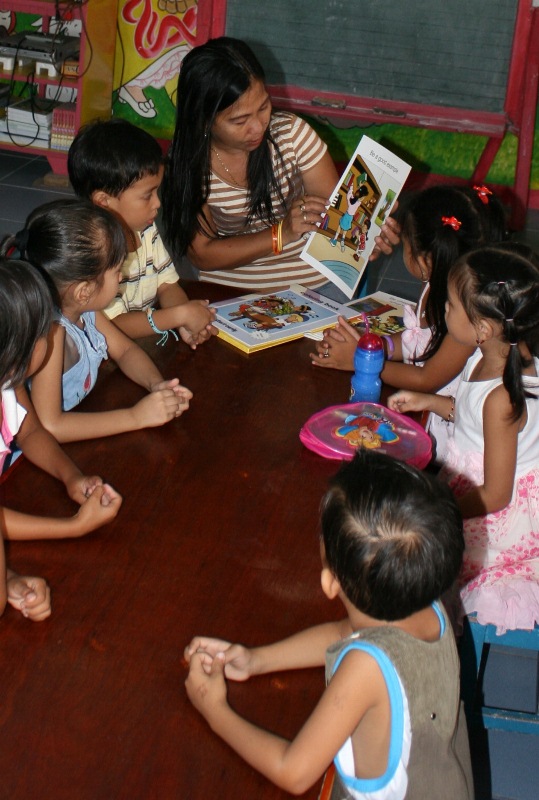 The students have all been viewing and learning the values concepts portrayed in the ten Treasure Attic episodes, various audio CDs, and wonderfully illustrated books, posters and activity pages provided to them by Activated Ministries. As none of the materials are available in the more common Tagalog language, we emphasize the use of the more visual materials during the training and orientation classes with the teachers as a starting point, and then move on to the stories which each teacher verbally translates as needed. The English exposure provided by these DAP materials has the ability and to help students gain a more firm grasp on spoken English.