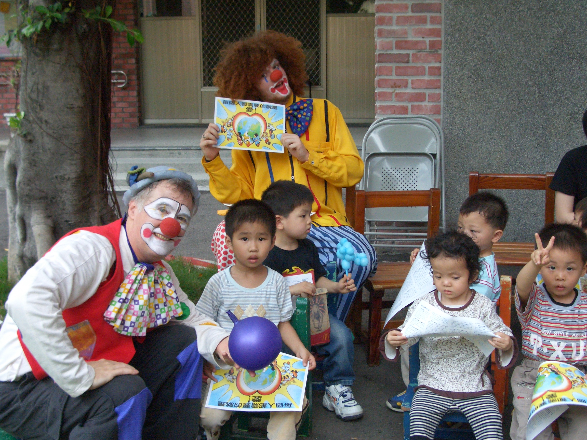 “Boy am I tired, but happy!” said Abing (aka Tim) along with side kick Abong, (aka Danny) who just finished clowning around and having fun with over 200 kids from the Taichung City Special Children Center. On a bright and sunny Saturday afternoon, two clowns from the Family International Taichung City center met and had lots of fun with this special bunch of kids by performing one of their renowned clown shows. With an afternoon of magic tricks, music, songs and dancing, it’s hard to tell if our clowns or the children had the most fun!