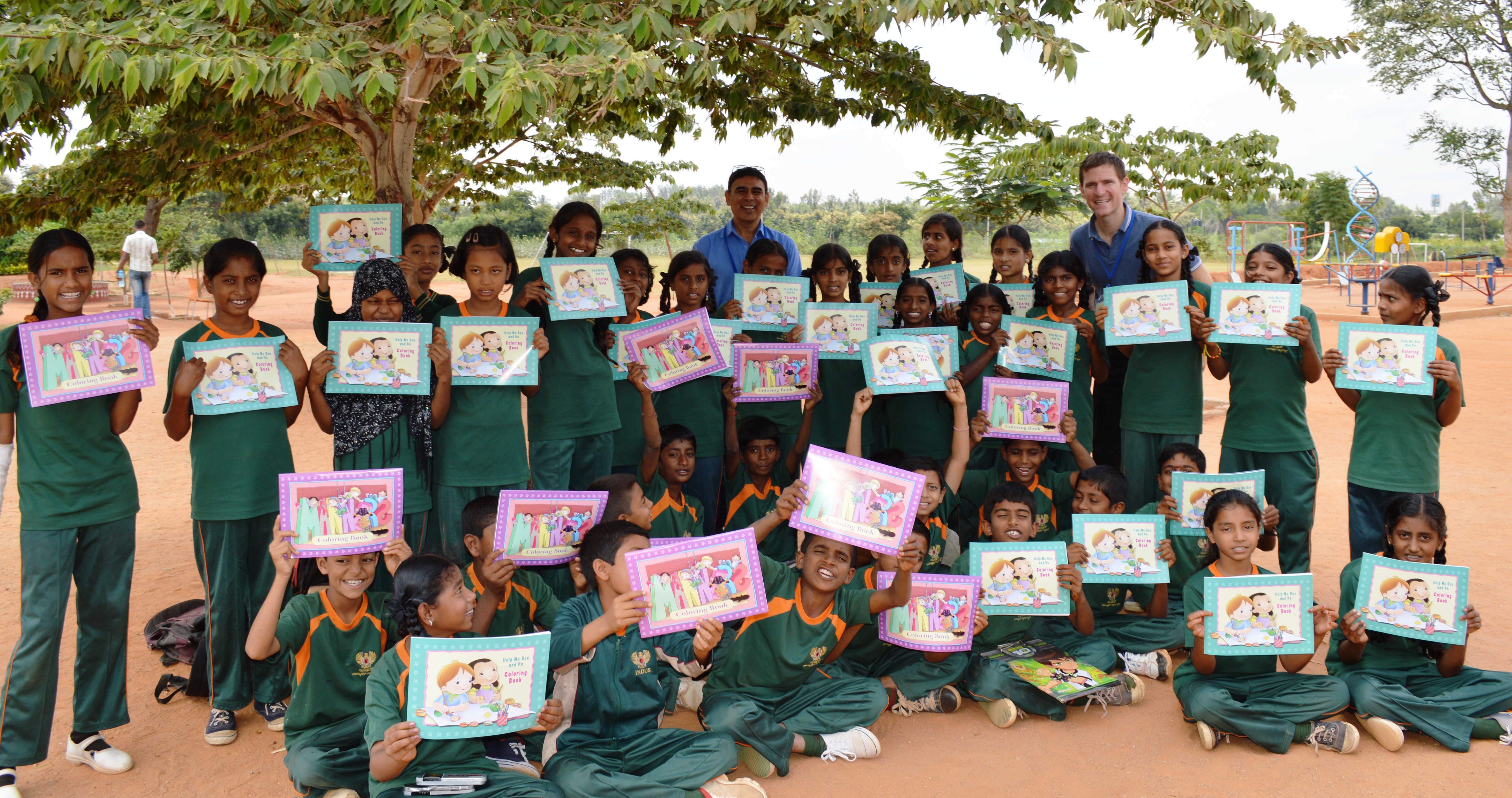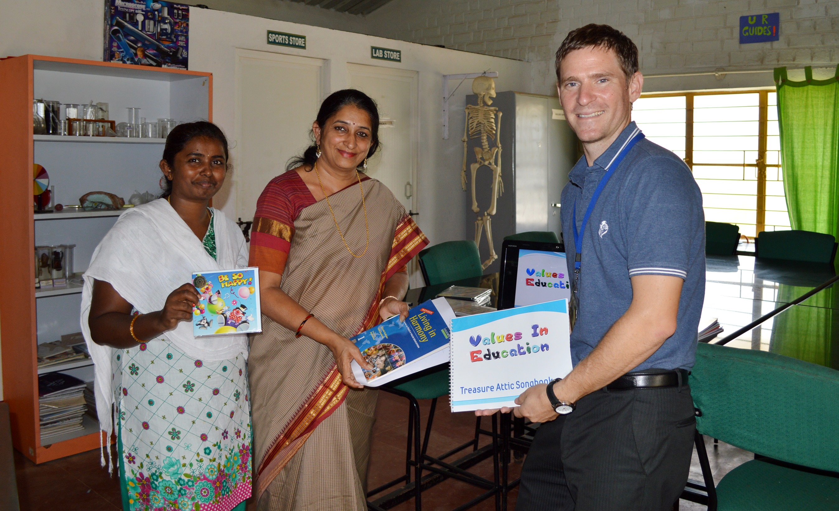 Reaching out to Indus Community School just outside of Bangalore, we received a warm and enthusiastic welcome by the Principal who connected deeply with our vision and importance of values education and moral development for young children. The school is beautifully kept and simply layout for optimal learning and their much needed service is growing quickly every year.