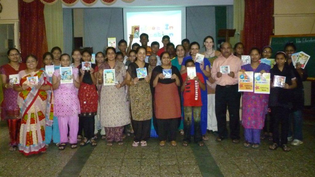 In mid June we visited to assess how the ViE Libraries have been benefitting them (we had obtained sponsorship for them to have a library last year, and were following up on their progress). We received helpful input as well as gratitude for the 6 libraries we had acquired for their organization last year. Thus far over 1,500 children have been served. They hope to expand this, and requested an additional library for one of their institutes in Pune. On September 25th we hosted a workshop for 77 of their teachers and delivered the libraries for both their Mumbai and Pune centres.