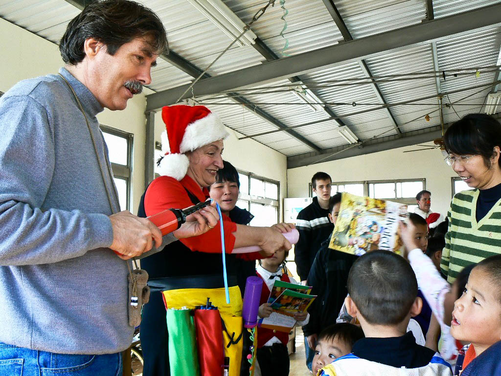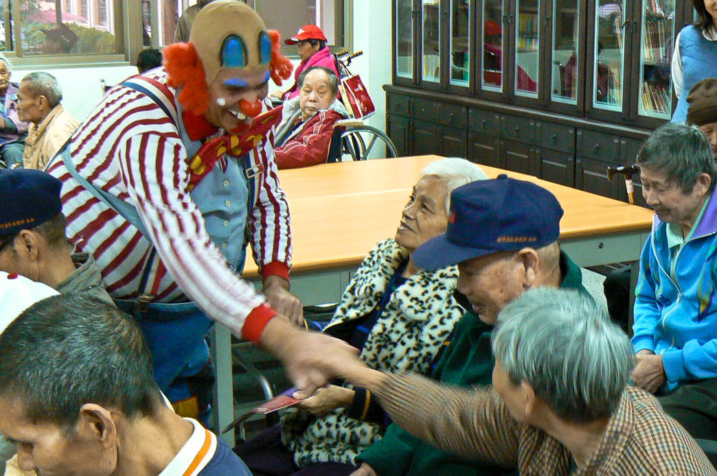 The following day, we visited the psychiatric ward atTaoyuan Veteran’s Hospital. The interactive clown performance helped to generate a touch of camaraderie between the patients and the performers. The patients were especially touched by our children’s distribution of Activated magazines and homemade cards. Our youngest daughter (age five), carefully spent hours making personal Christmas cards with a note saying “Merry Christmas”. Some of the people were close to tears from the affection of a little child’s drawing for them. Several of the patients stood up to thank us for coming and sharing the Christmas message.